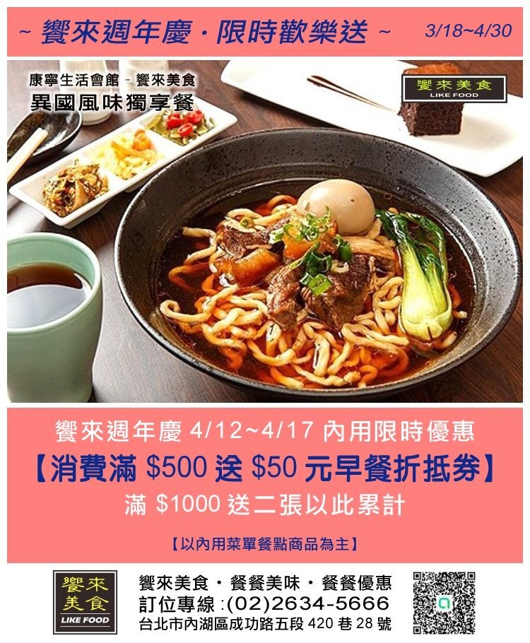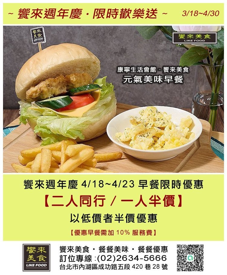 康寧生活會館1F餐廳-“饗來美食”週年慶開跑囉!